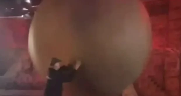 وأظهرت مشاهد متداولة أن كرة عملاقة خرجت عن مسارها أثناء إعادة تمثيل مشهد شهير من فيلم غزاة تابوت العهد، فيما تقدّم أحد موظفي العرض في محاولة لإيقافها، وتمكّن من الحدّ من اندفاعها قبل أن تطيحه أرضا أمام الحضور.