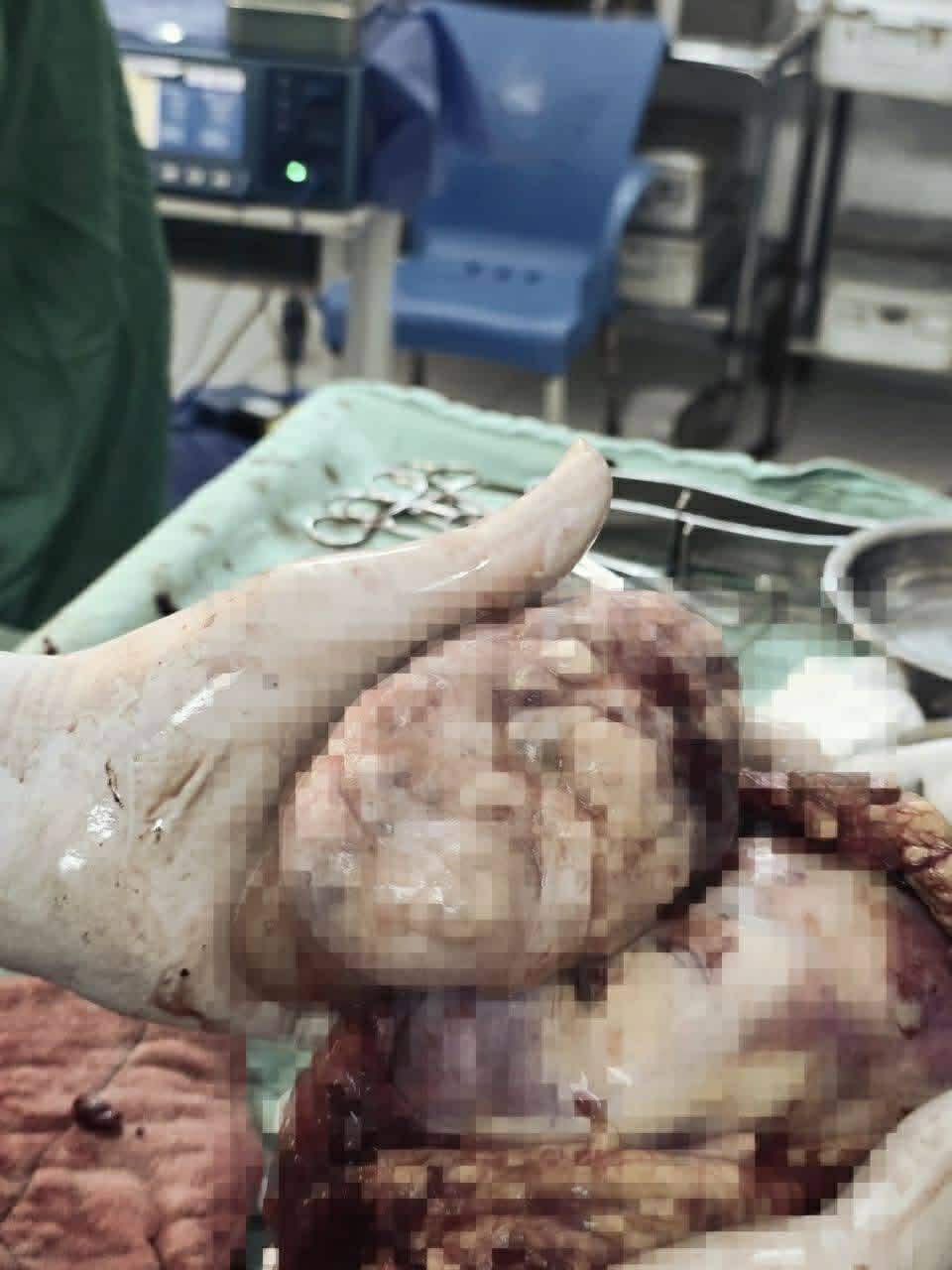تم قبول المريض في شعبة الجراحة البولية واجريت الإستشارات اللازمة وتحضير المريض بشكل جيد واجريت العملية حيث تم استئصال الكلية اليمنى بشكل جذري حيث استئصلت بشكل كامل مع الجيروتا والحالب وتسليخ الكلية عن الكولون الصاعد.