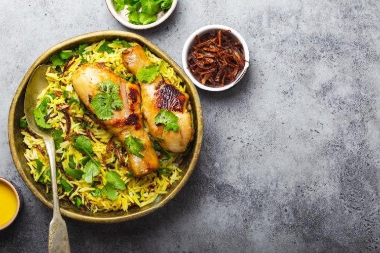 و عالوجه نضع قطع الدجاج مع المكسرات وممكن إضافة رشة بقدونس