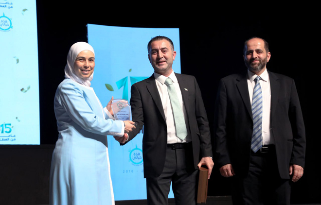 وتخلل حفل التكريم الذي أقيم على مسرح دار الأوبرا بدمشق جاء بمناسبة الذكرى الخامسة عشرة لتأسيس المجموعة، عرض للمشاريع التي قامت بها المؤسسة خلال السنوات الماضية، إضافة لعرض تجارب ناجحة لعدد من المتطوعين وفقرات شعرية وابتهالات دينية.