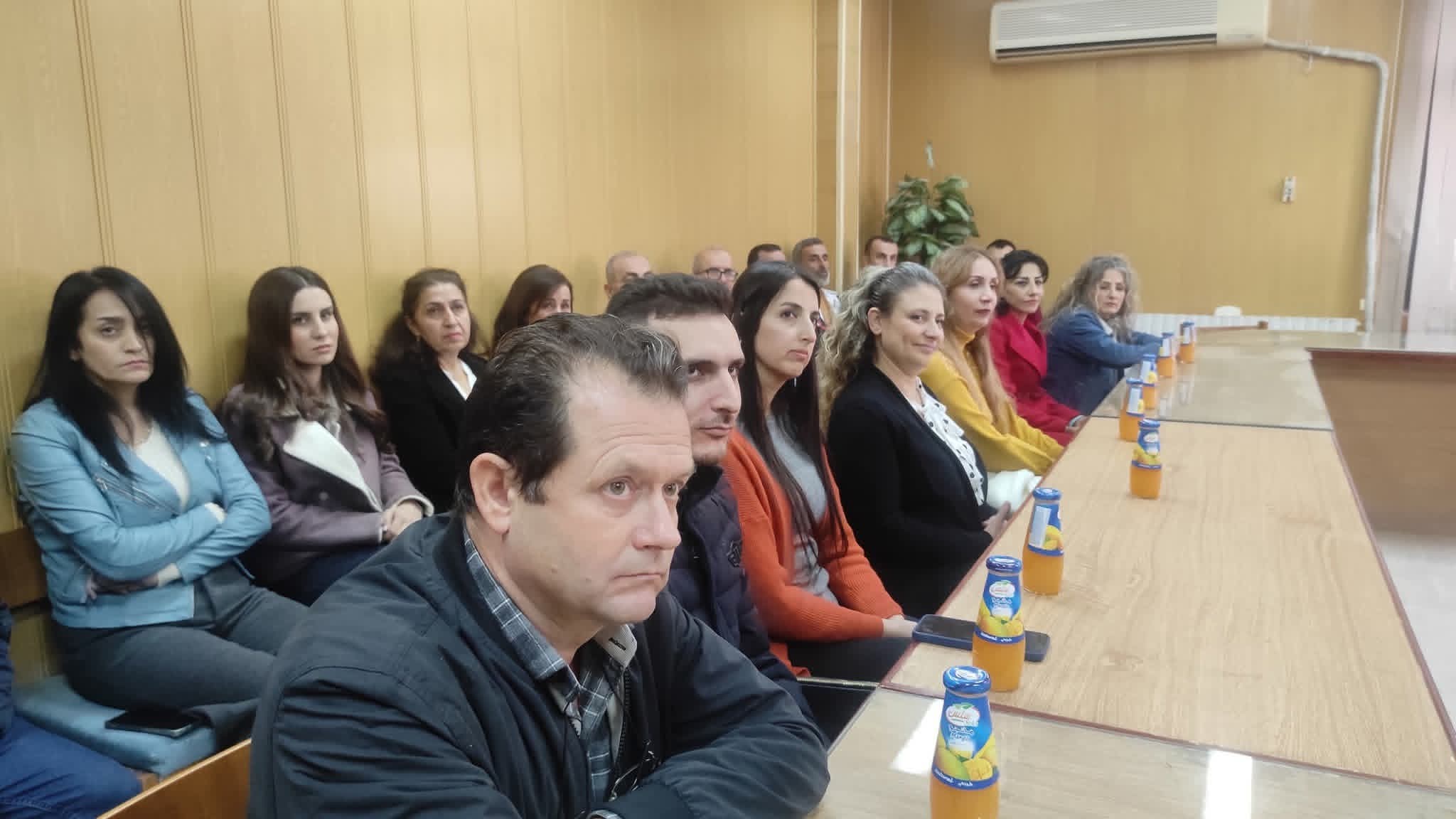 بحضور السيد المدير العام للمؤسسة العامة لمياه الشرب في طرطوس المهندس عبد الله طاهر الحمود والسادة المدراء أقيم حفل رسمي اليوم في المؤسسة، جرى خلاله تكريم عدد من العمال المجتهدين تقديرًا لجهودهم المخلصة والمتميزة في أداء مهامهم، حرصاً على نجاح العمل ورفع سويته، واستمرار الخدمات بكفاءة وجودة عالية.
