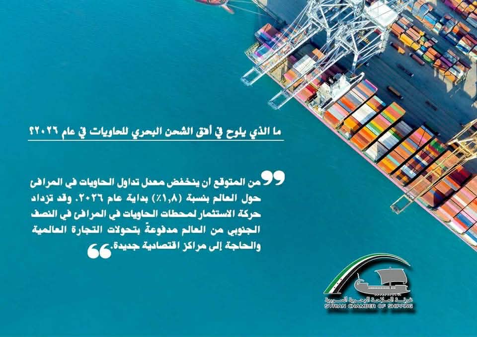 بعد أن حقق الشحن البحري للحاويات زيادة مقدارها (٥,٥ %)خلال عام ۲۰۲٥ ، من المتوقع أن ينخفض معدل تداول الحاويات في المرافئ حول العالم بنسبة (۱,۸ %)بداية عام ٢٠٢٦ على أن يبلغ نموا يتراوح بين (٢ – ٣%) في وقت لاحق