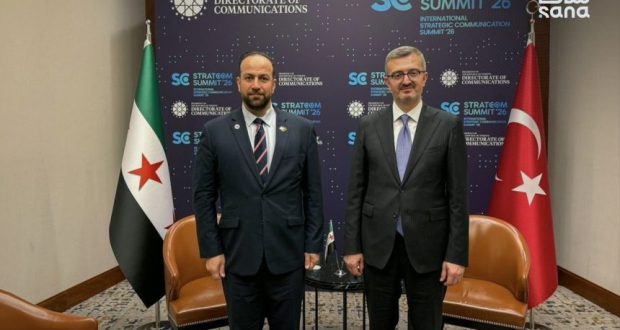 وذكرت وزارة الإعلام عبر قناتها على تلغرام، اليوم السبت، أن اللقاء جاء على هامش أعمال قمة الاتصال الاستراتيجي الدولية لعام 2026 (SUMMIT STRATCOM)، وتناول أيضاً أوضاع الصحفيين السوريين العاملين في تركيا، والاستفادة من خبراتهم، وتعزيز حضورهم في الإعلام العربي والتركي، والمساعدة في تنظيم وقوننة عملهم الصحفي والإعلامي.