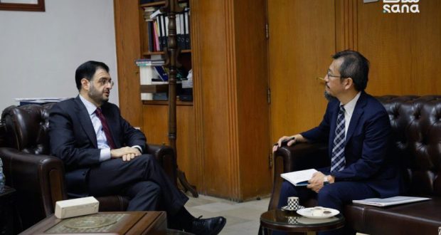 بحث وزير الاتصالات وتقانة المعلومات السوري عبد السلام هيكل مع القائم بأعمال السفارة اليابانية بدمشق تسوجي أكيهيرو آفاق التعاون في مجالات الاتصالات وتكنولوجيا المعلومات، وسبل تطوير البنية التحتية ودعم بيئة الأعمال الرقمية المبتكرة في سوريا.