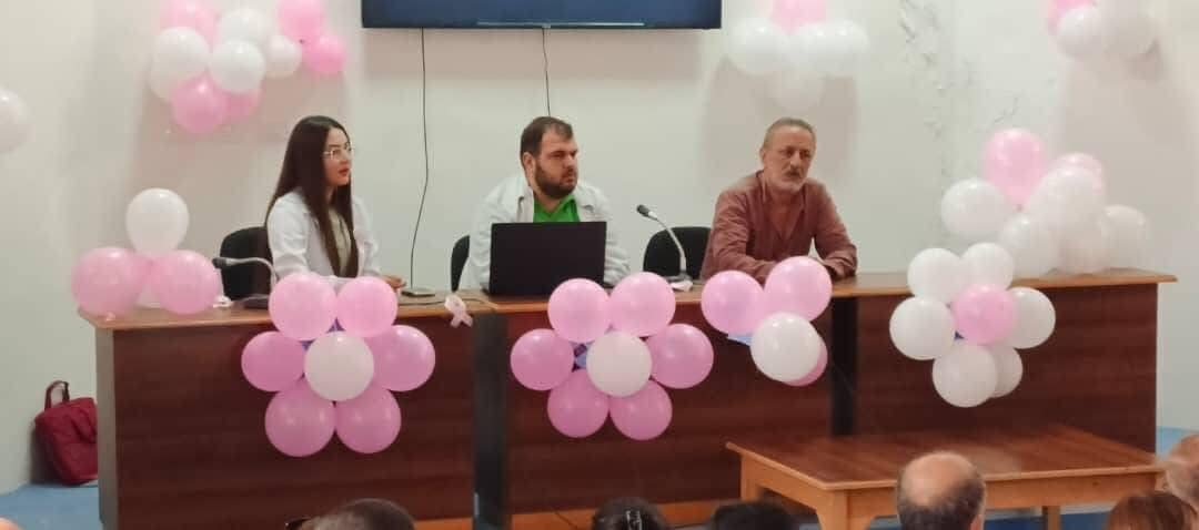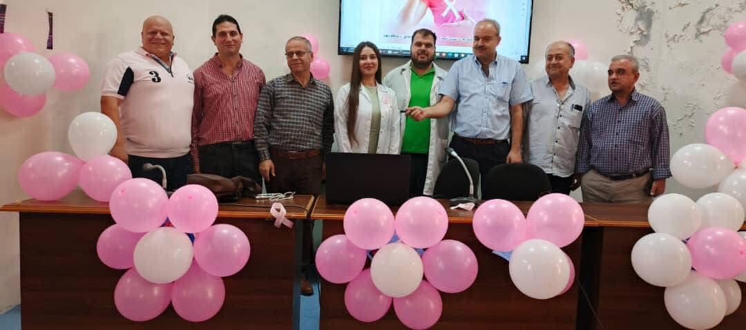 بمناسبة الشهر الوردي وبالتعاون بين المنطقة الصحية ومشفى الشيخ بدر الوطني، تم تنظيم محاضرة علمية بعنوان الكشف المبكر عن سرطان الثدي بحضور الدكتور عادل برهوم مدير المشفى، ومدير المنطقة الصحية في الشيخ بدر الدكتور آصف حسين، وعدد من الأطباء المختصين والمقيمين والكادر التمريضي والإداري والمهتمين.