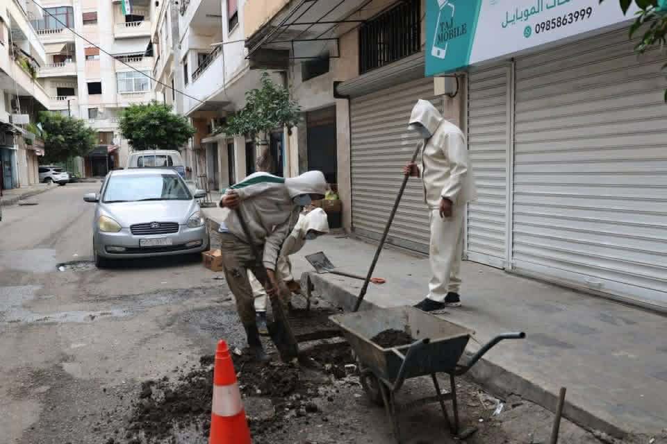 مدينة طرطوس:هدم مخالفة بناء في حي الفقاسة واستمرار أعمال تعزيل المصارف المطرية في الشوارع ومتابعة أعمال قص الاغصان وتقليم الأشجار في منصفات وأرصفة وحدائق المدينة