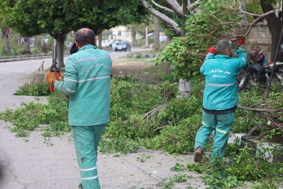 مدينة طرطوس:هدم مخالفة بناء في حي الفقاسة واستمرار أعمال تعزيل المصارف المطرية في الشوارع ومتابعة أعمال قص الاغصان وتقليم الأشجار في منصفات وأرصفة وحدائق المدينة