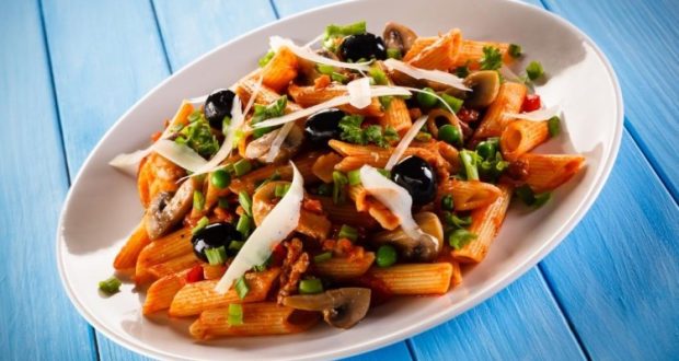 طريقة تحضير مكرونة بيني بصلصة الطماطم والزيتون والريحان