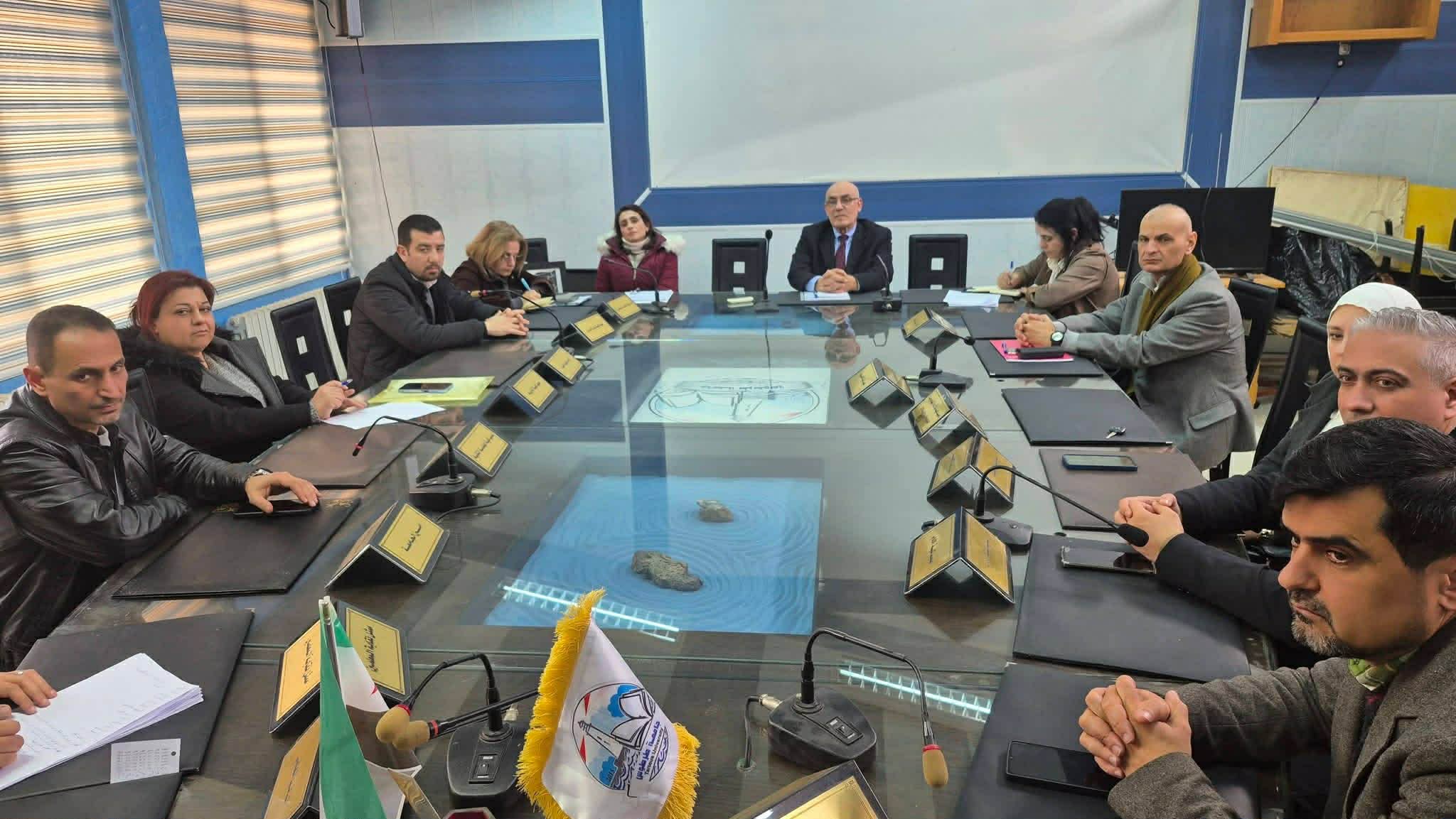 عقد مجلس الشؤون العلمية والبحث العلمي في جامعة طرطوس اجتماعه الدوري اليوم الاثنين، بحضور رئيس الجامعة الأستاذ الدكتور اديب محمد برهوم