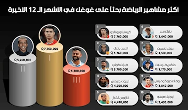 وليس مفاجئاً أن يحلّ “أسطورة” كرة السلة الأميركية ليبرون جيمس في المركز الرابع بمتوسط 4.7 ملايين عملية بحث شهرياً، ليكون ممثّل الولايات المتحدة الأبرز ضمن الخمسة الأوائل، وهو الذي أصبح رمزاً ثقافياً واجتماعياً مؤثراً.