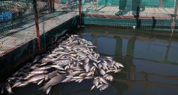 ويقول “عندما شاهدنا الأسماك متعبة، حاولنا إنعاشها بالأوكسيجين، بينما كانت المياه سوداء”.