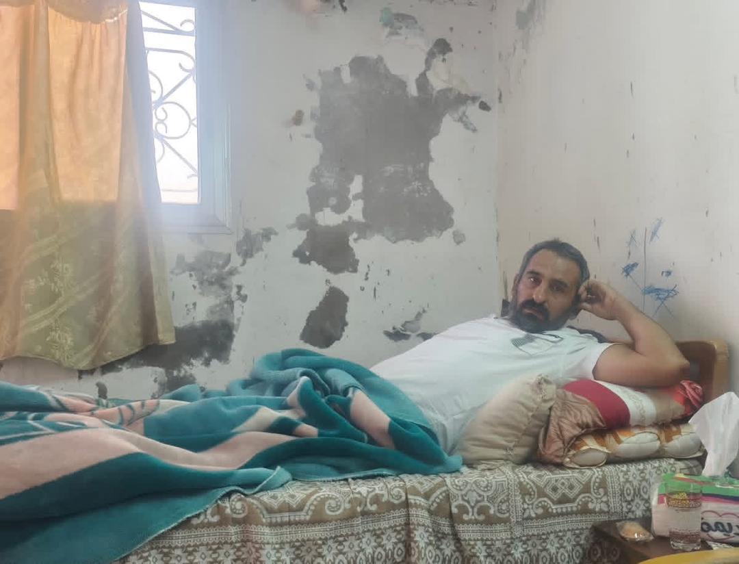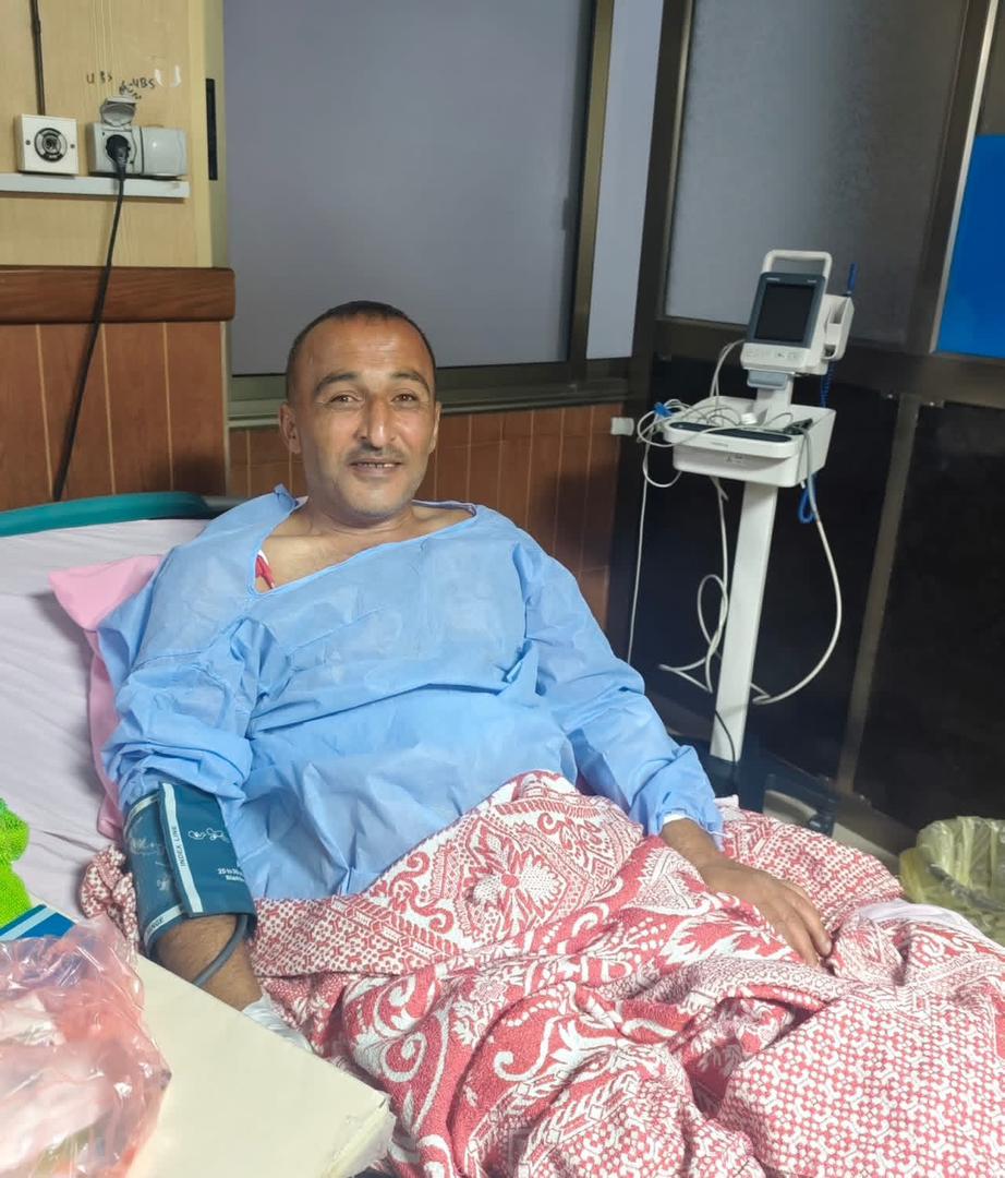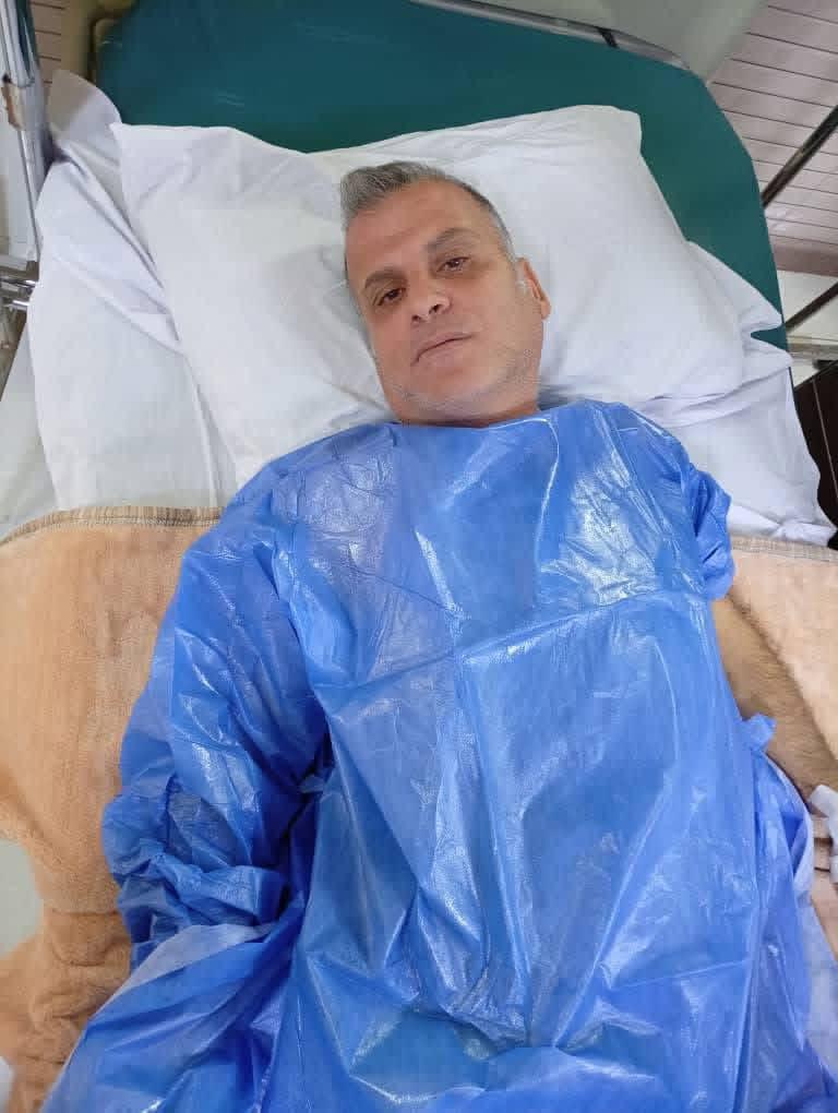 والعامل هادي حسامو في المشفى الوطني بطرطوس بعد تعرضه لجلطة قلبية استدعت إجراء شبكتين للقلب،