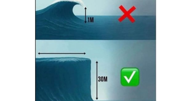 “التسونامي” ليس موجة متكسرة كالتي نعرفها، بل جدار مائي عملاق قد يتجاوز ارتفاعه 30 مترًا ويمتد أفقياً لمسافات شاسعة.