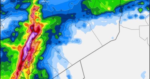 - محافظة طرطوس وريف حماة الغربي: تكون الهطولات مطرية متوسطة إلى غزيرة حتى صباح الخميس، مع ميل الفعالية الجوية للتراجع اعتباراً من ساعات الصباح.