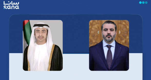 أجرى وزير الخارجية والمغتربين أسعد حسن الشيباني اليوم السبت اتصالاً هاتفيّاً مع وزير خارجية دولة الإمارات العربية المتحدة، عبد الله بن زاید آل نهیان، تناول خلاله التطورات الإقليمية الأخيرة.