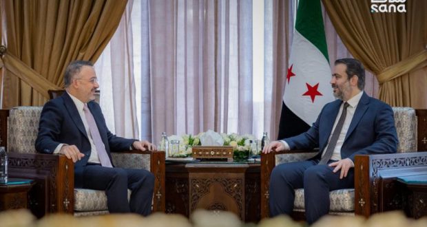 استقبل وزير الخارجية والمغتربين السوري أسعد حسن الشيباني، في العاصمة دمشق، سفير تركيا لدى الجمهورية العربية السورية نوح يلماز، وجرى خلال اللقاء بحث التطورات الإقليمية الأخيرة وتداعياتها على المنطقة.