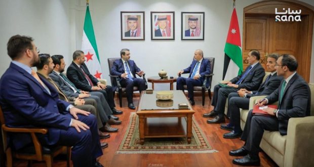 التقى وزير الخارجية والمغتربين أسعد حسن الشيباني، اليوم السبت في عمّان نائب رئيس الوزارء، وزير الخارجية في المملكة الأردنية الهاشمية أيمن الصفدي.