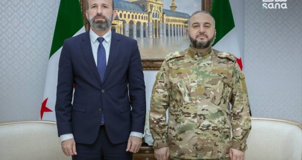 بحث وزير الدفاع اللواء مرهف أبو قصرة مع محافظ الرقة عبد الرحمن سلامة، عدداً من القضايا المشتركة.