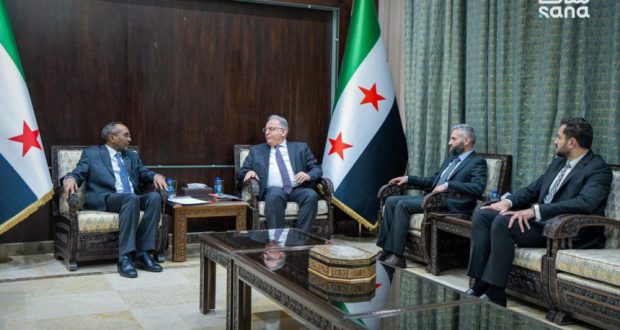 بحث وزير المالية محمد يسر برنية مع سفير جمهورية الصومال الفيدرالية في دمشق، أبيب موسى فارح، سبل تعزيز التعاون المشترك بين البلدين.