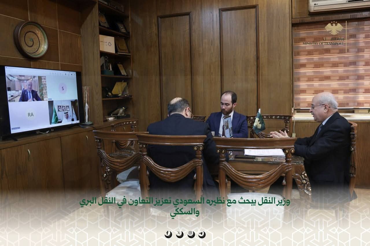 عقد وزير النقل الدكتور يعرب بدر اليوم اجتماعاً عبر تقنية الاتصال المرئي مع وزير النقل والخدمات اللوجستية السعودي المهندس صالح الجاسر، بحث خلاله سبل تعزيز التعاون الثنائي في قطاعيّ النقل البري والسككي، وتطوير الروابط اللوجستية بين البلدين، كما تناول الاجتماع القضايا الاستراتيجية التي تدعم تفعيل شبكة النقل الإقليمي، مع التركيز على مشروع الربط السككي بين السعودية وسورية عبر الأردن وصولاً إلى تركيا، بالإضافة إلى تعزيز التعاون في مجال النقل البري الذي يشهد حركةً متزايدةً ونشاطاً ملحوظاً.
