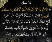 ﴿وَلَا تَهِنُوا وَلَا تَحْزَنُوا وَأَنتُمُ الْأَعْلَوْنَ إِن كُنتُم مُّؤْمِنِينَ﴾