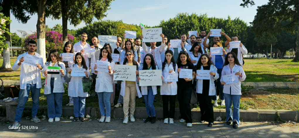 نفّذ اليوم أكثر من 700 طبيب (مقيم للاختصاص ولم تتعاقد معهم وزارة الدفاع بعد سقوط النظام السابق)وقفات احتجاجية متزامنة (في العاصمة دمشق امام الأمانة العامة لرئاسة الجمهورية-شؤون مجلس الوزراء وفي طرطوس امام مبنى المحافظة وفي اللاذقية امام مبنى المحافظة) طالبوا خلالها بالتعاقد معهم من قبل وزارة الدفاع الذين كانوا مفرزين اليها او بإنهاء ارتباطهم بوزارة الدفاع، والتعاقد معهم من قبل وزارة الصحة بعد تكليفهم بالعمل في مشافيها منذ ستة أشهر بدون اي اجور