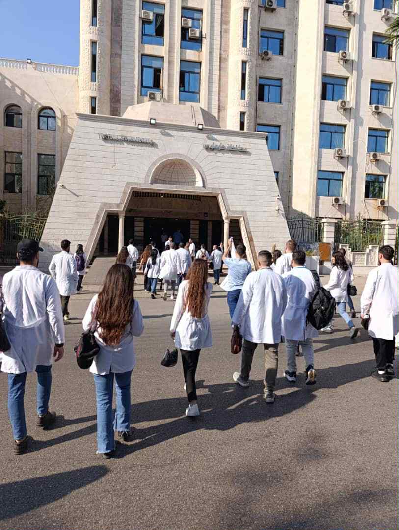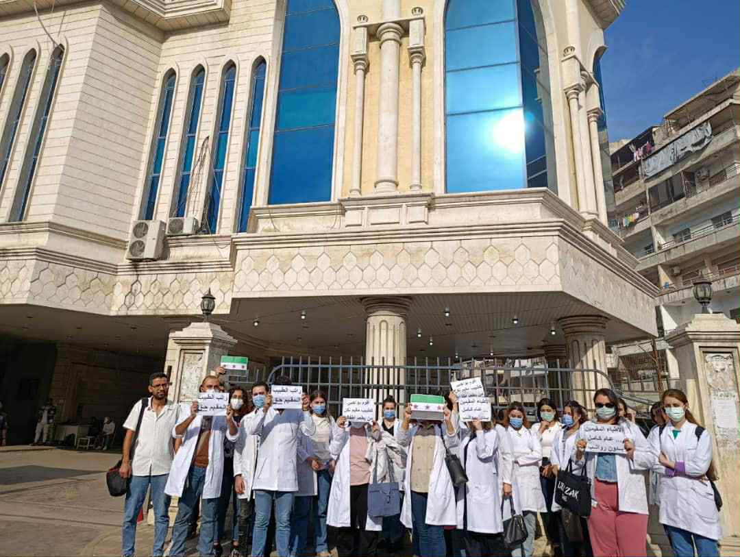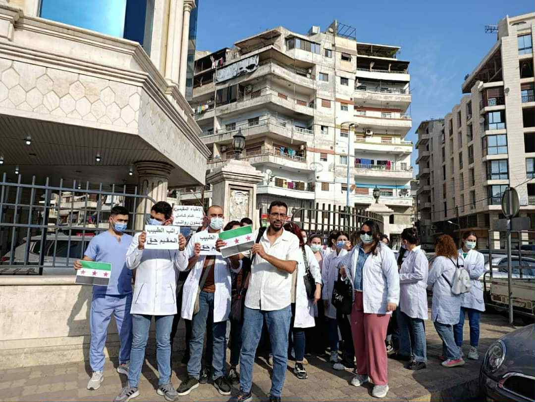 نفّذ اليوم أكثر من 700 طبيب (مقيم للاختصاص ولم تتعاقد معهم وزارة الدفاع بعد سقوط النظام السابق)وقفات احتجاجية متزامنة (في العاصمة دمشق امام الأمانة العامة لرئاسة الجمهورية-شؤون مجلس الوزراء وفي طرطوس امام مبنى المحافظة وفي اللاذقية امام مبنى المحافظة) طالبوا خلالها بالتعاقد معهم من قبل وزارة الدفاع الذين كانوا مفرزين اليها او بإنهاء ارتباطهم بوزارة الدفاع، والتعاقد معهم من قبل وزارة الصحة بعد تكليفهم بالعمل في مشافيها منذ ستة أشهر بدون اي اجور