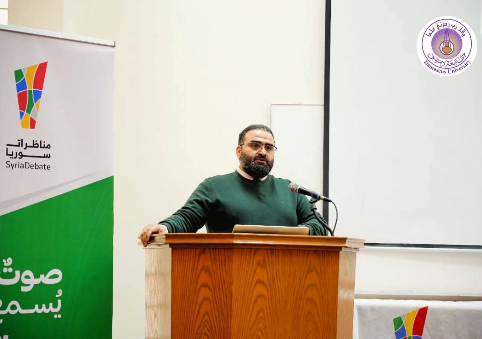 وأوضح عميد كلية الإعلام، الدكتور خالد زعرور، أهمية إحياء ثقافة المناظرة في الجامعات، مشيراً إلى جذورها العميقة في التراث العربي، حيث شكّلت المناظرات أحد أهم أشكال الخطاب وإنتاج المعرفة عبر التاريخ، واعتبر أن إعادة إحيائها اليوم ضمن بيئة جامعية منظمة يسهم في بناء جيل قادر على الحوار المسؤول وصناعة رأي عام واعٍ ومستنير، مؤكداً مكانة كلية الإعلام كمنبر للحوار وكمساحة تحتضن الإبداع الفكري لدى الشباب الجامعي السوري.